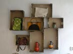 Tentoonstelling met schilderijen, kettingen en tassen. artbrutkik.nl